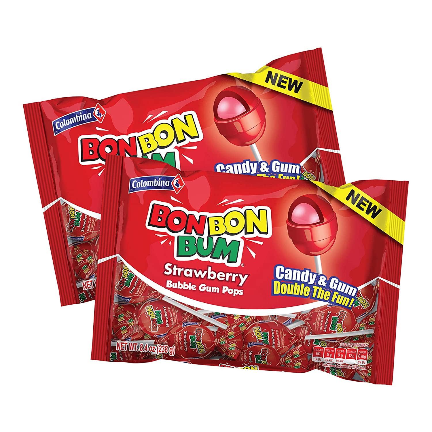 Colombina Bon Bon Bum Chewing Gum Filled Lollipops Strawberry Flavor 2 Packs Of 25 Bubble Gum Pops Each Walmart Com